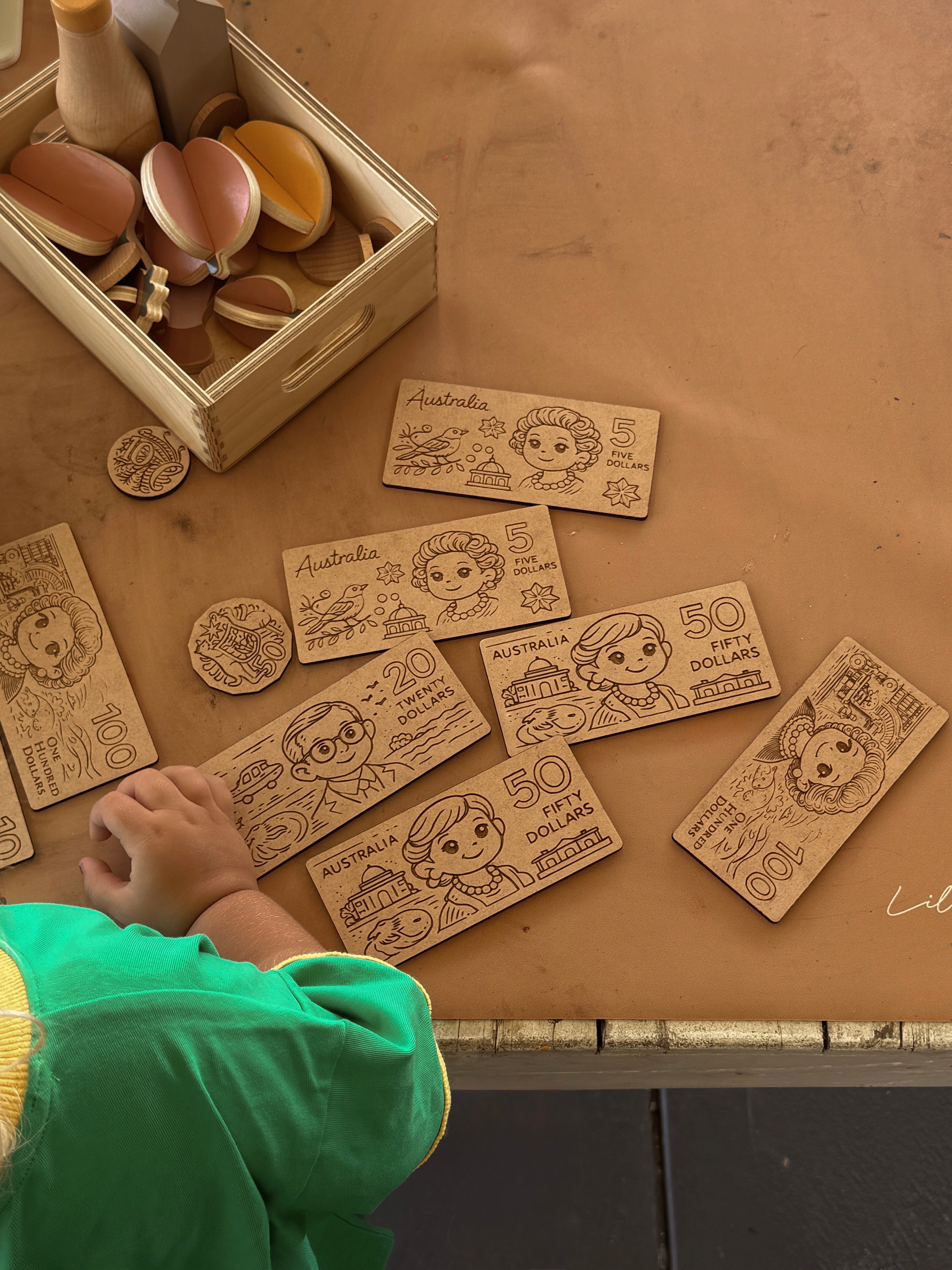 Encourage imaginative play, early numeracy, and real-world learning with our Timber Tots Australian Play Money Set – thoughtfully designed for little hands and growing minds.