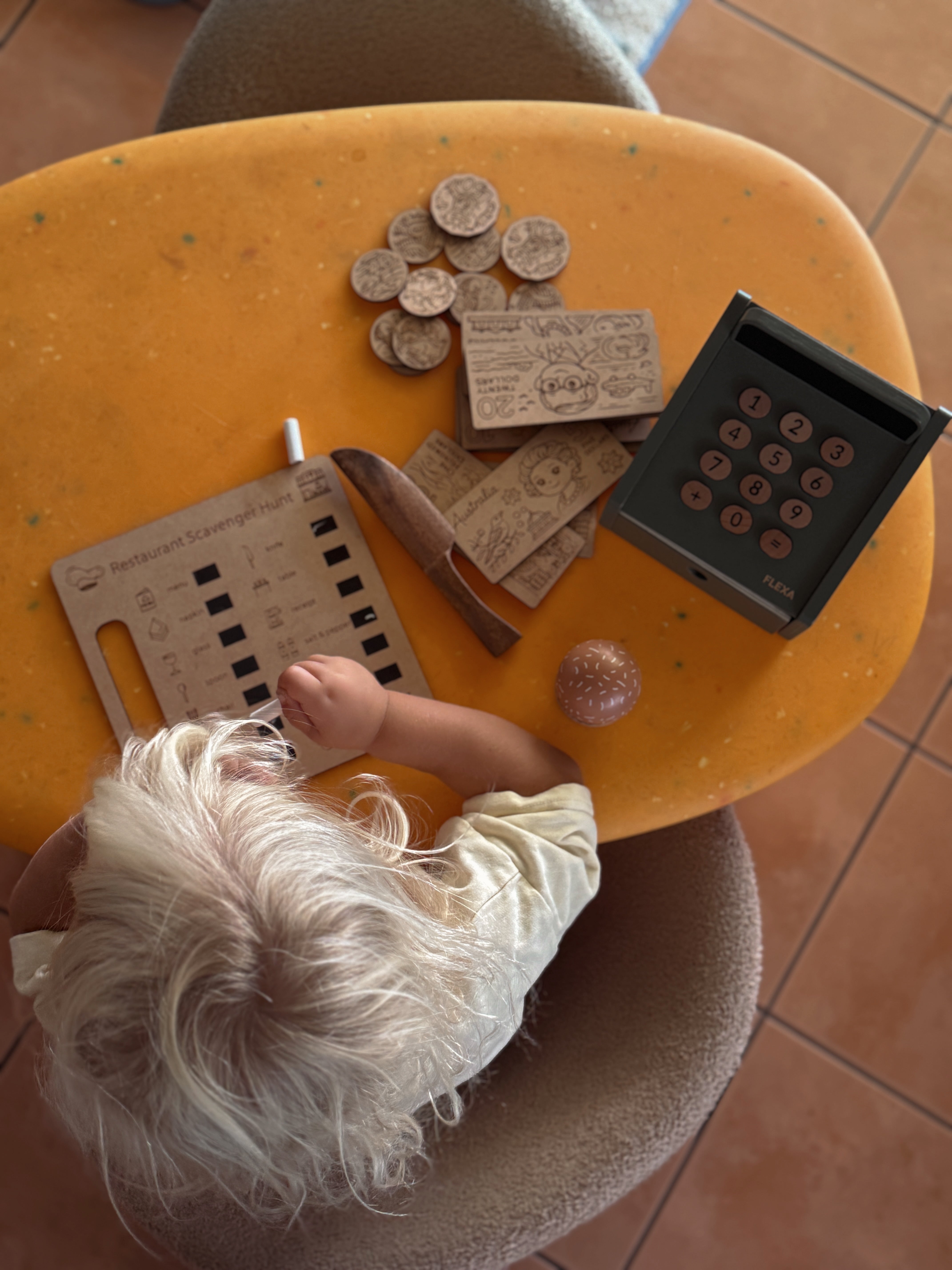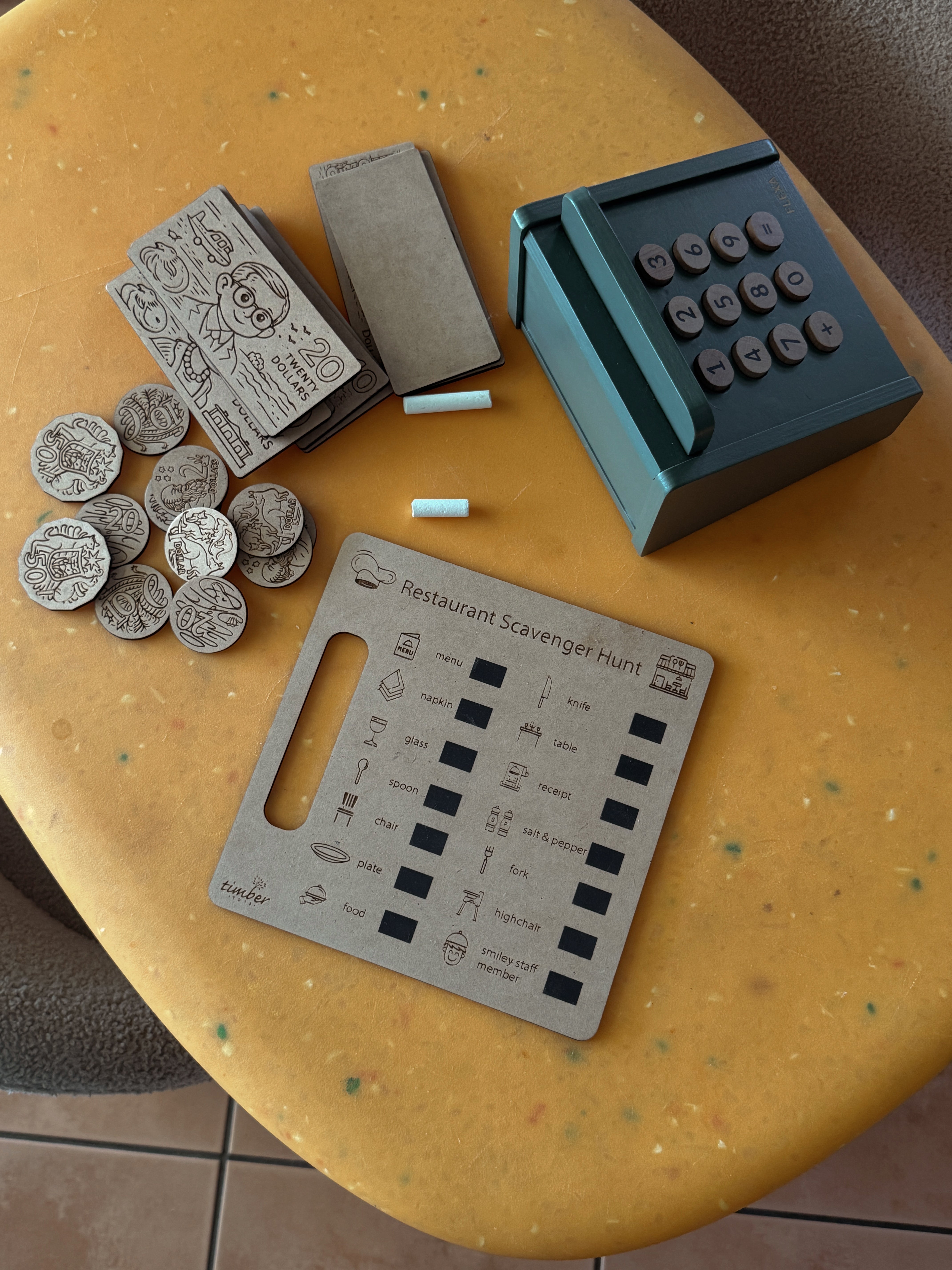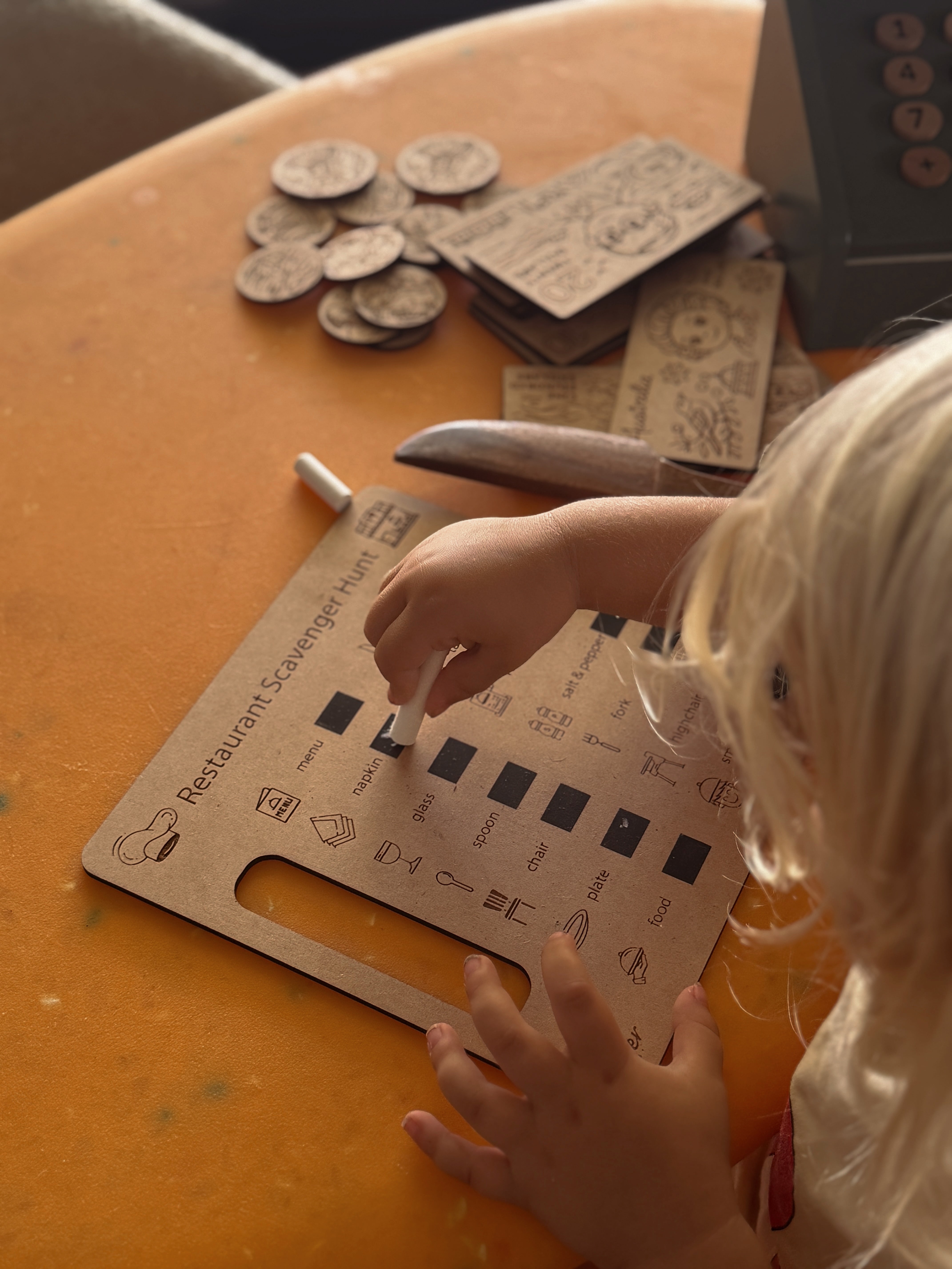 Using chalk or a chalkboard pen, children can tick off each item as they find it around the restaurant. Want to make it even more exciting? Set a timer, challenge siblings, or offer a small prize for the first to complete the hunt!
